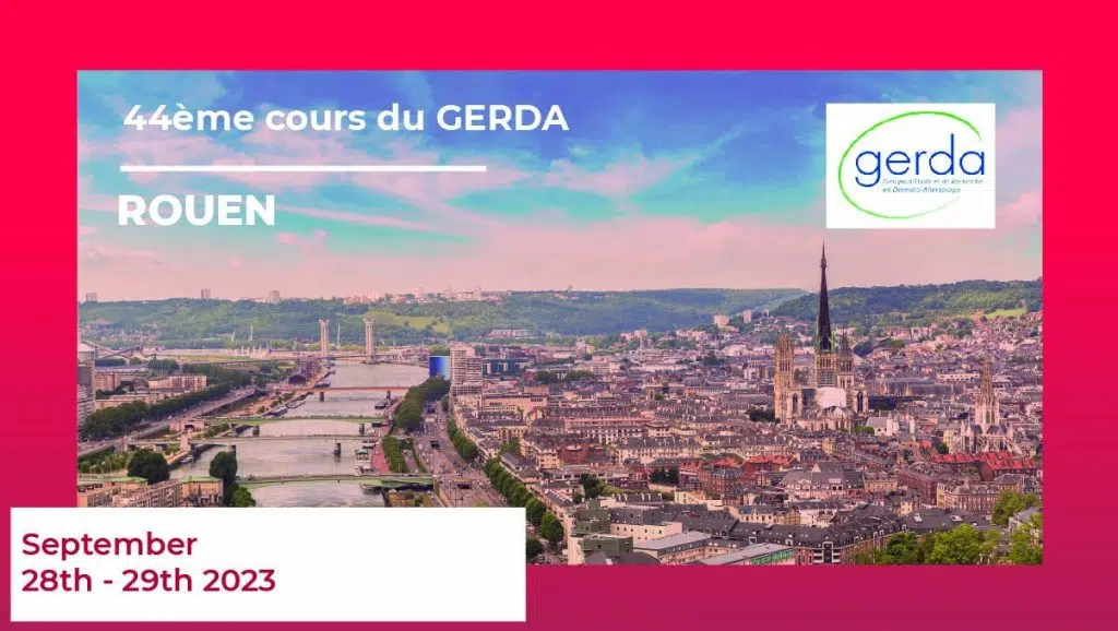 On September 28 and 29, the GERDA course will take place in Rouen. This 44th course will once again be an opportunity to discuss and continue to progress together in the exciting field of dermato-allergology.